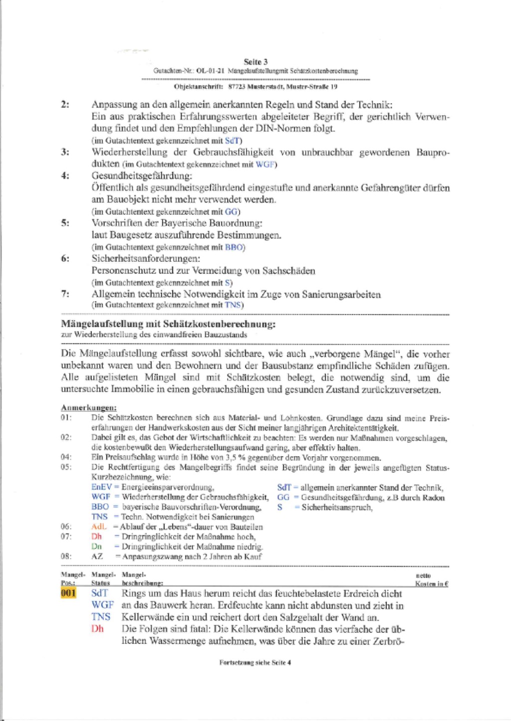 - „Geschönte“ Mängelerfassungen nutzen Ihnen gar nichts. Seriöse Beweissicherungen nennen Ihnen „ungeschminkte“ Kosten, (auch geschossübergreifend), um Sie vertraut zumachen, auf was Sie sich einlassen.