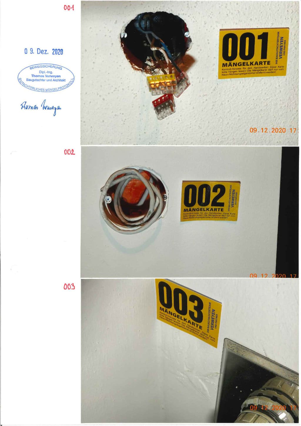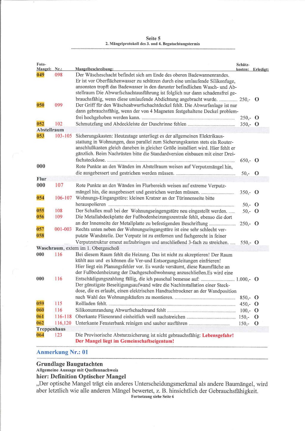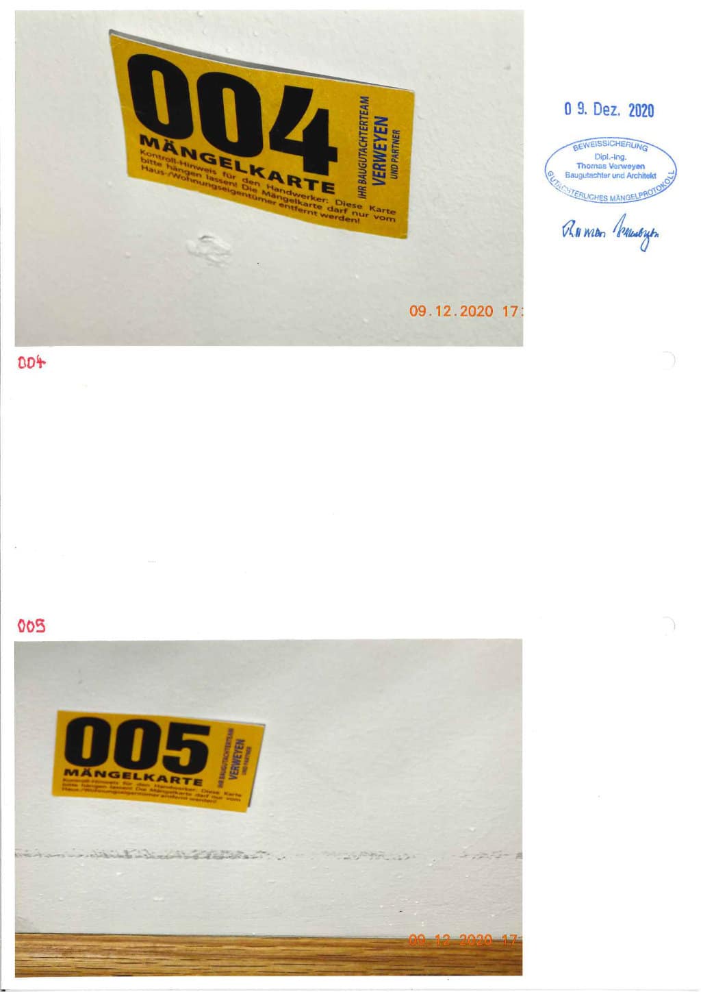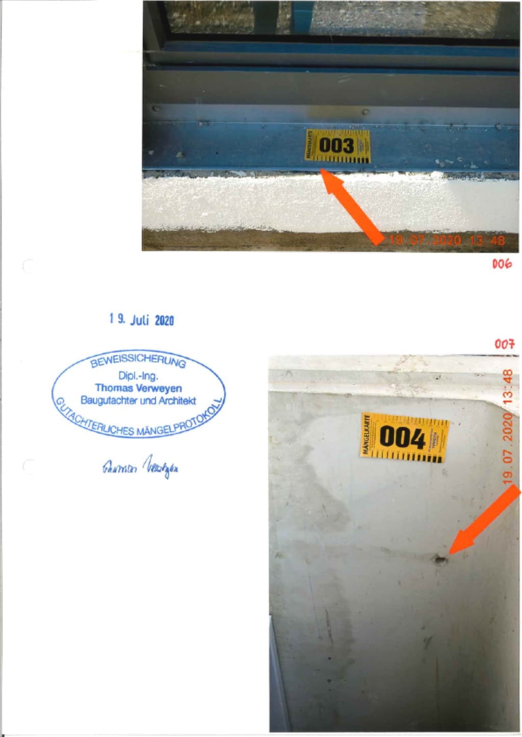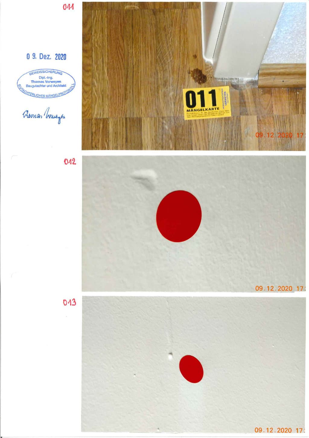 b.) Meine Mängelprotokoll-Gutachten sind perfekt bebildert und schriftlich ausführlich erläutert.