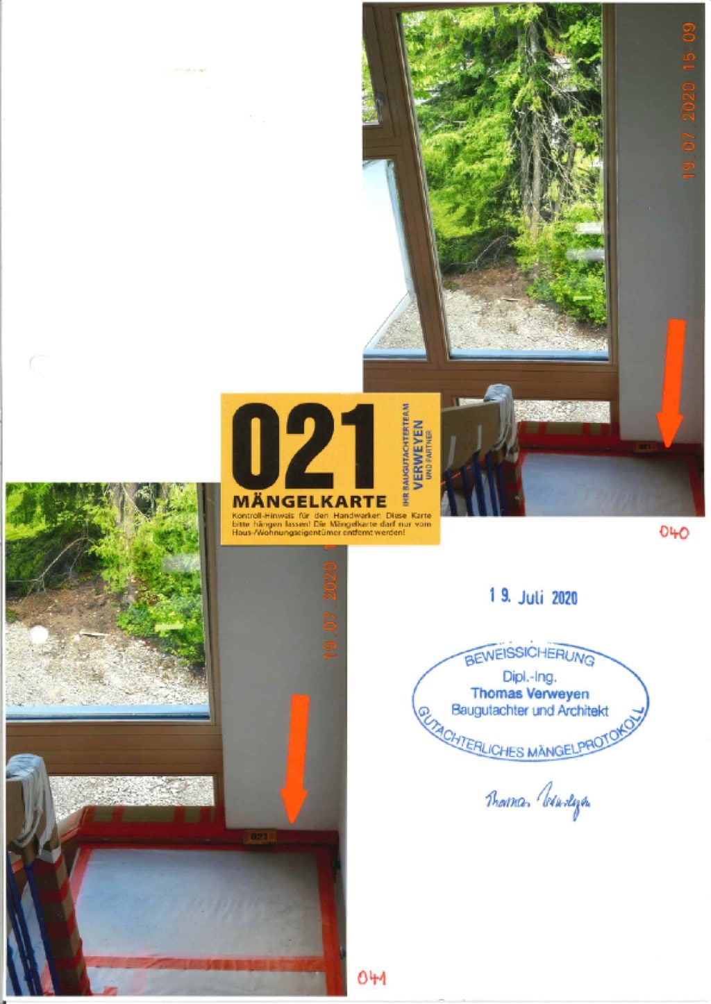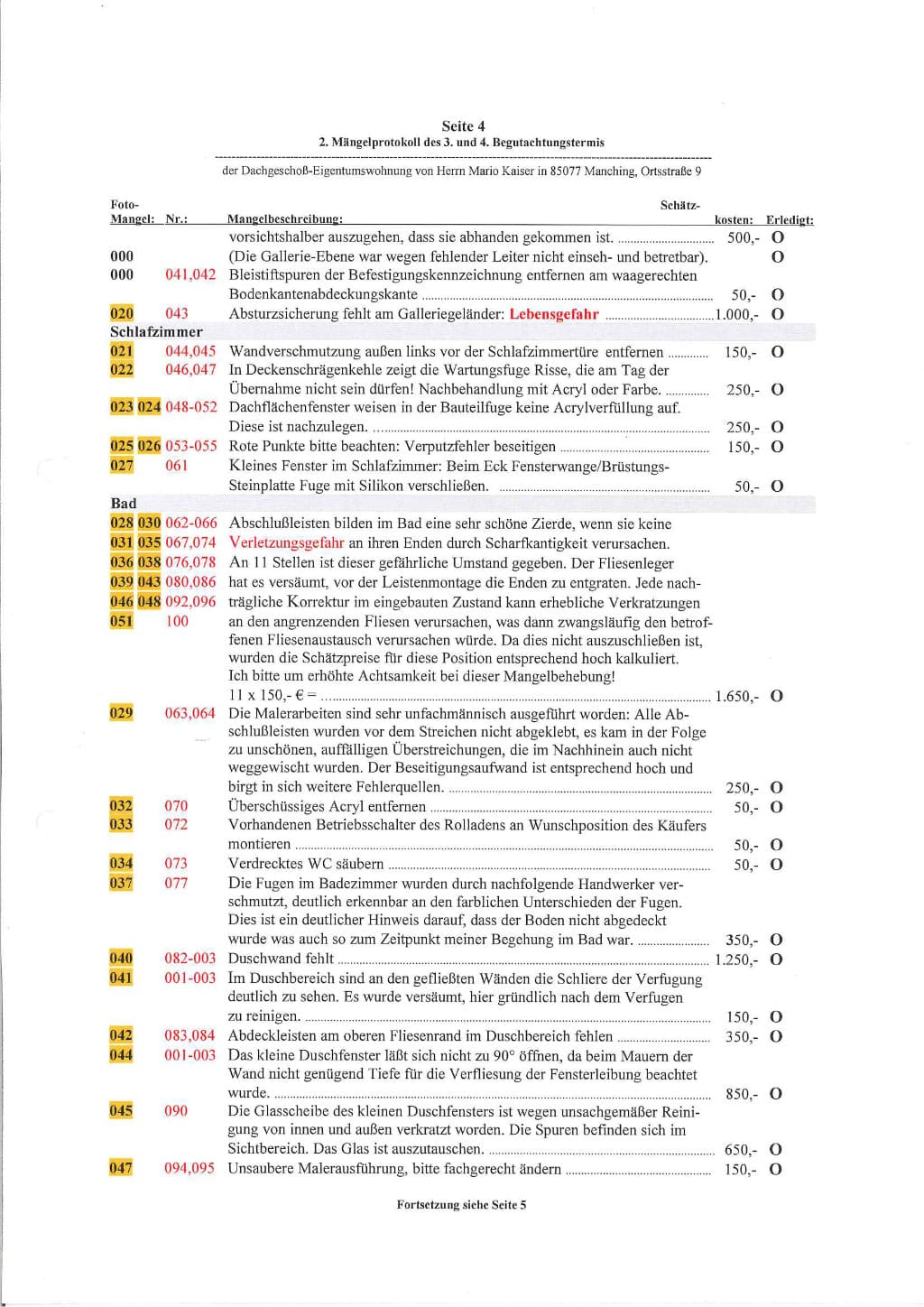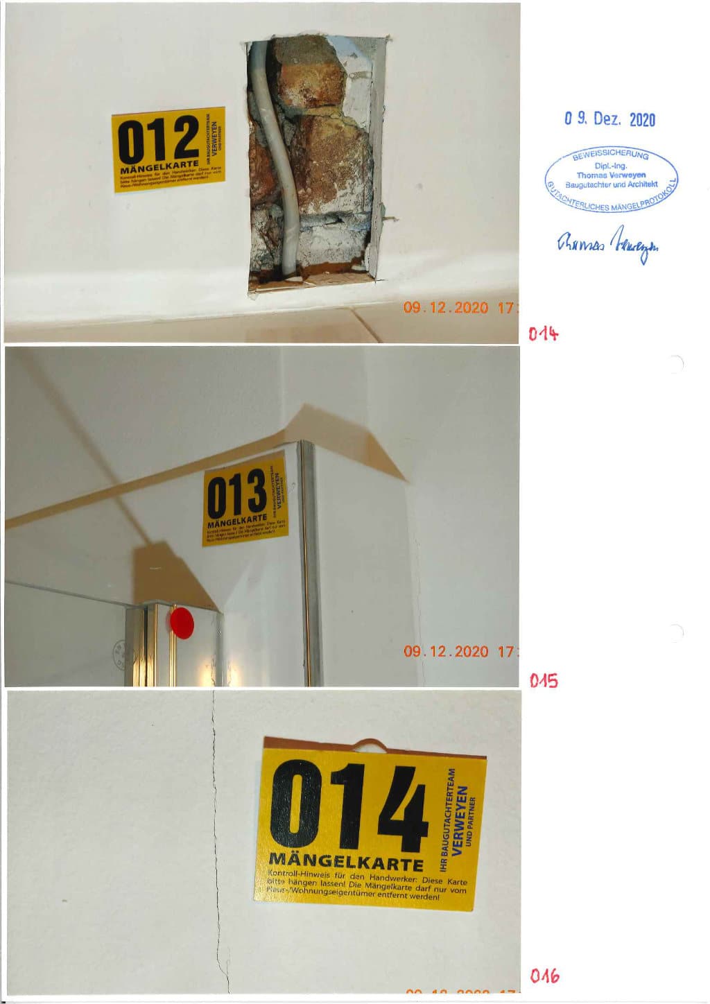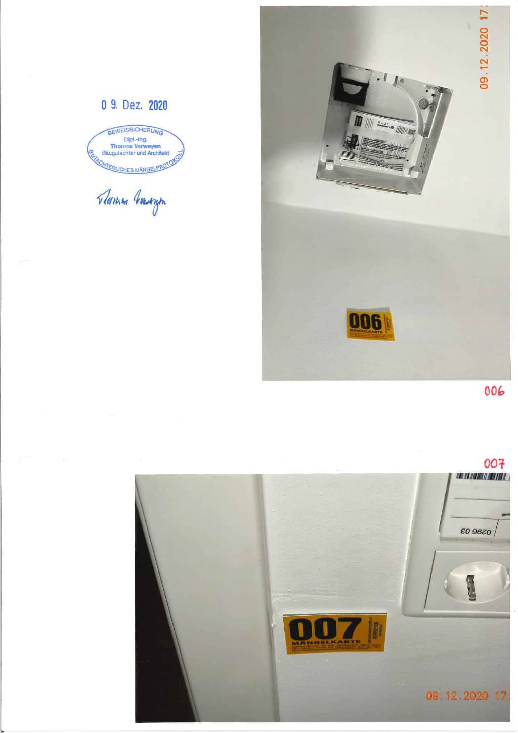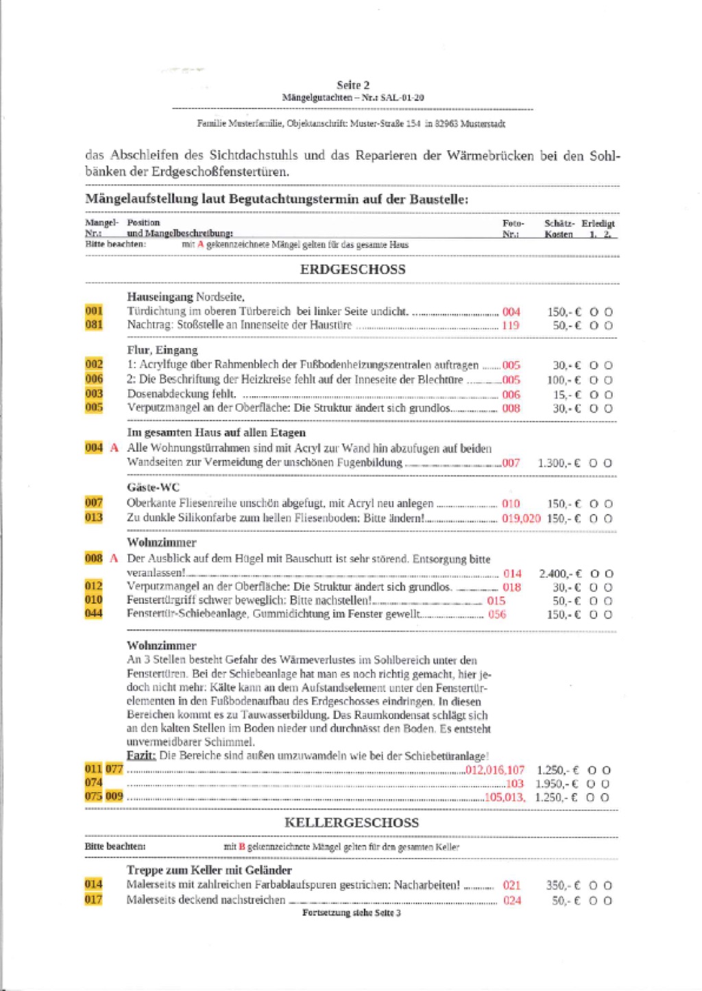 b.) Meine Mängelprotokoll-Gutachten sind perfekt bebildert und schriftlich ausführlich erläutert.