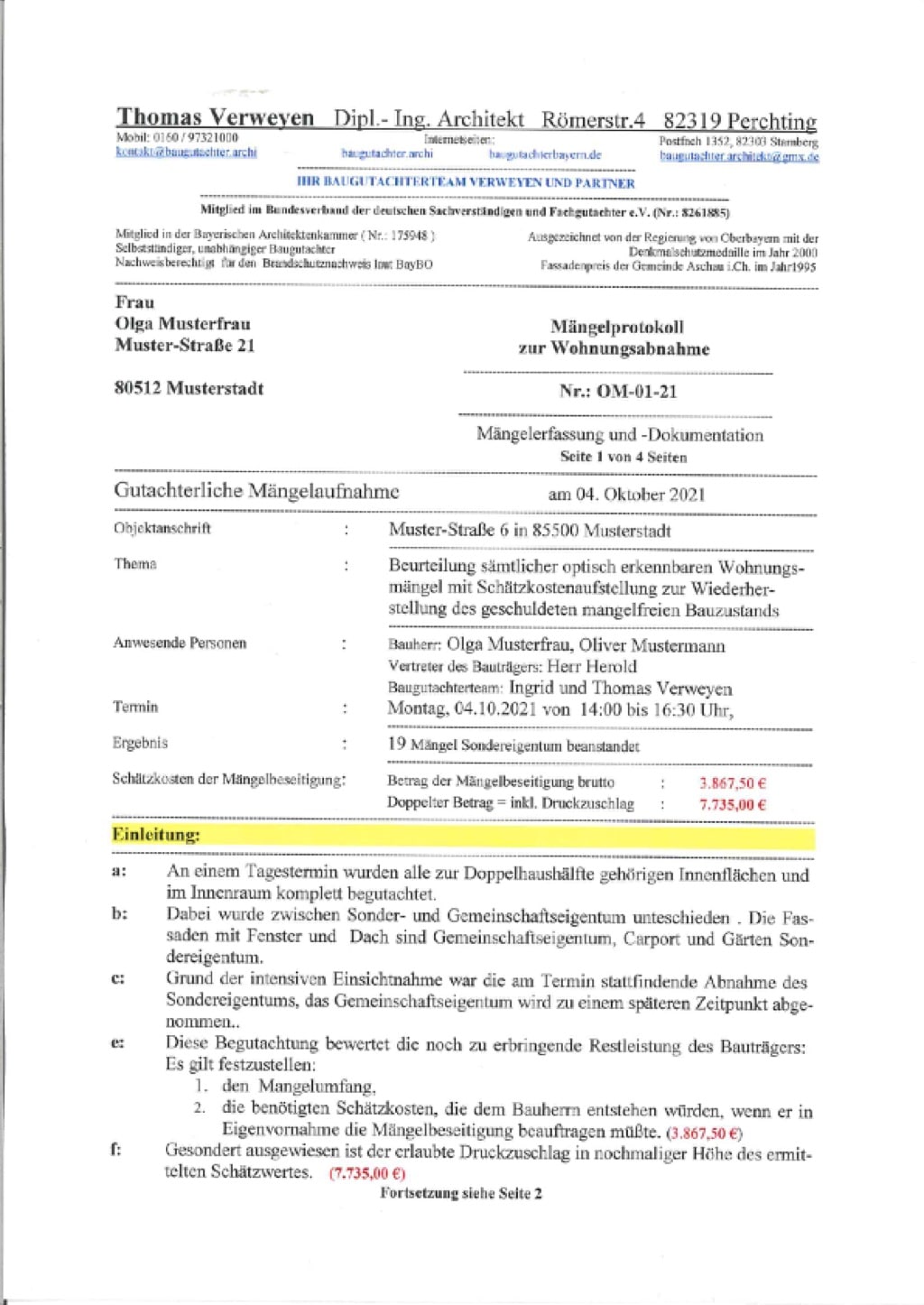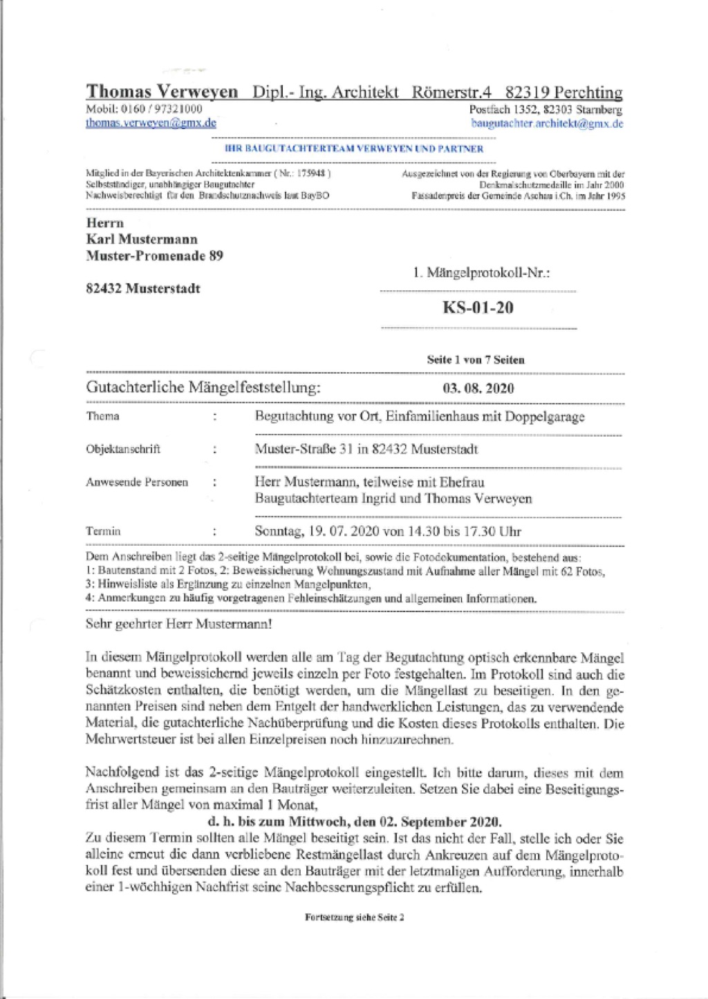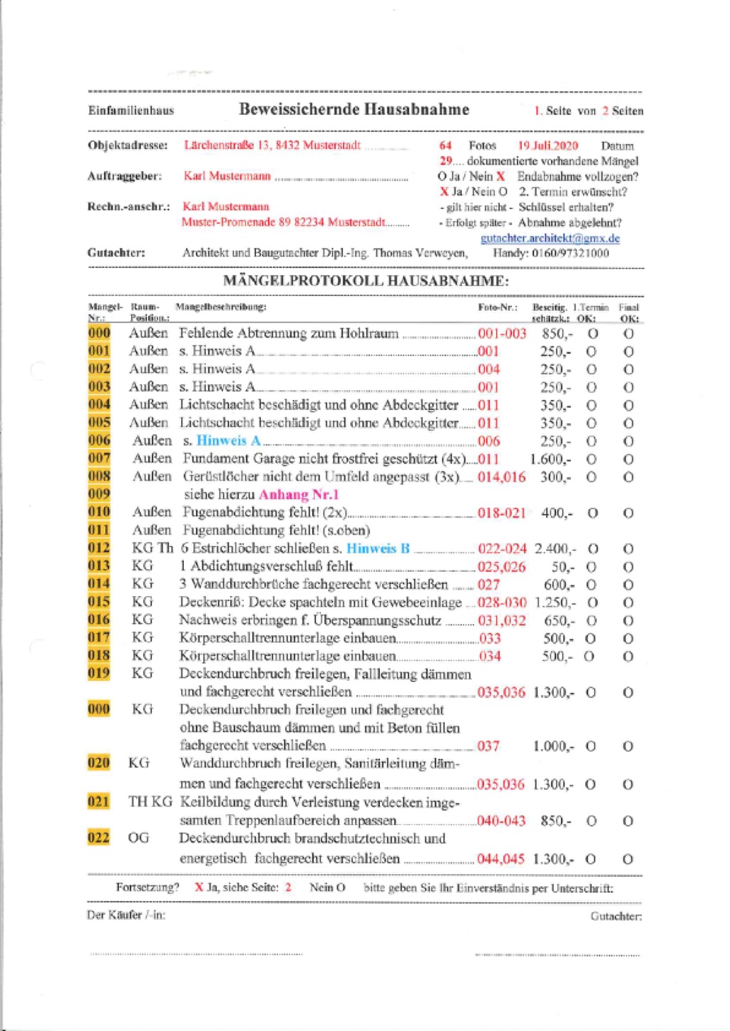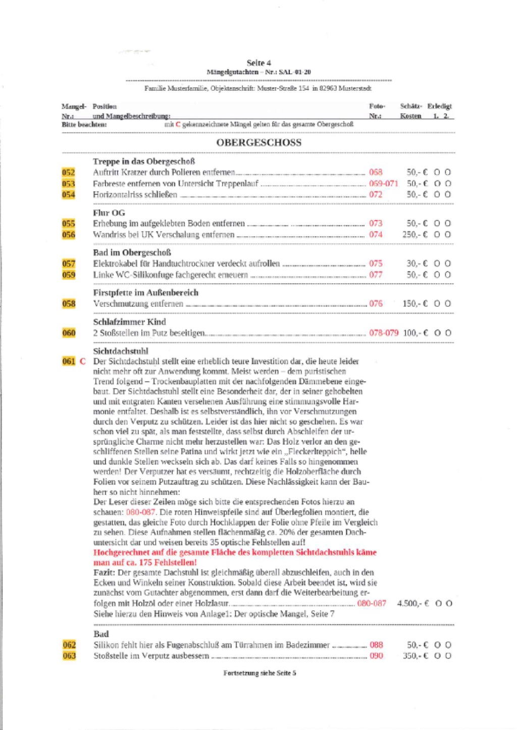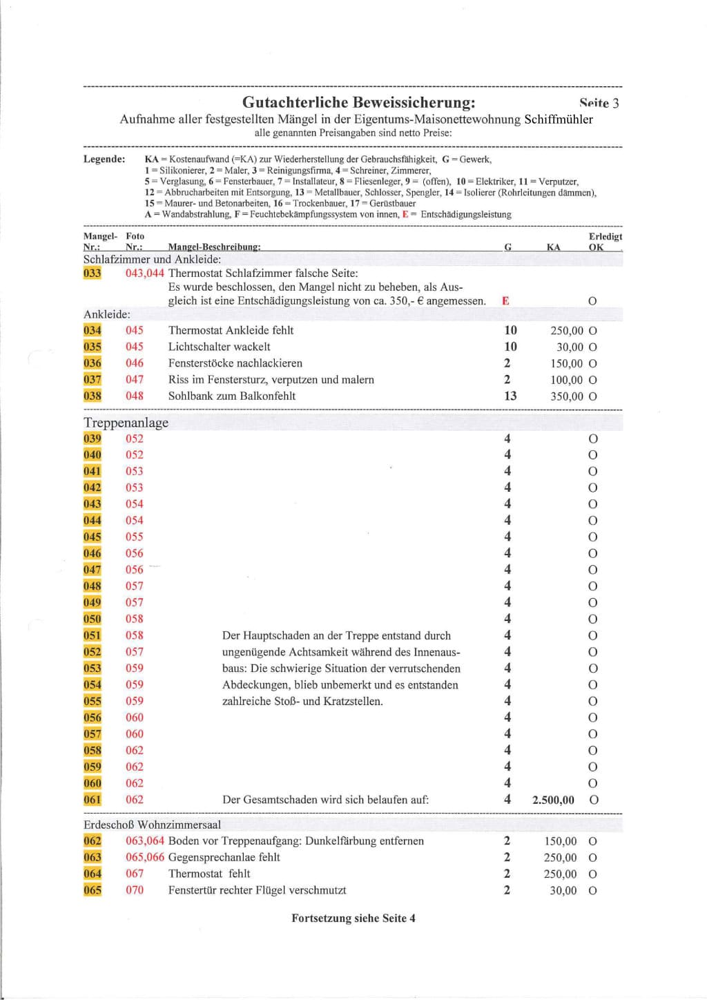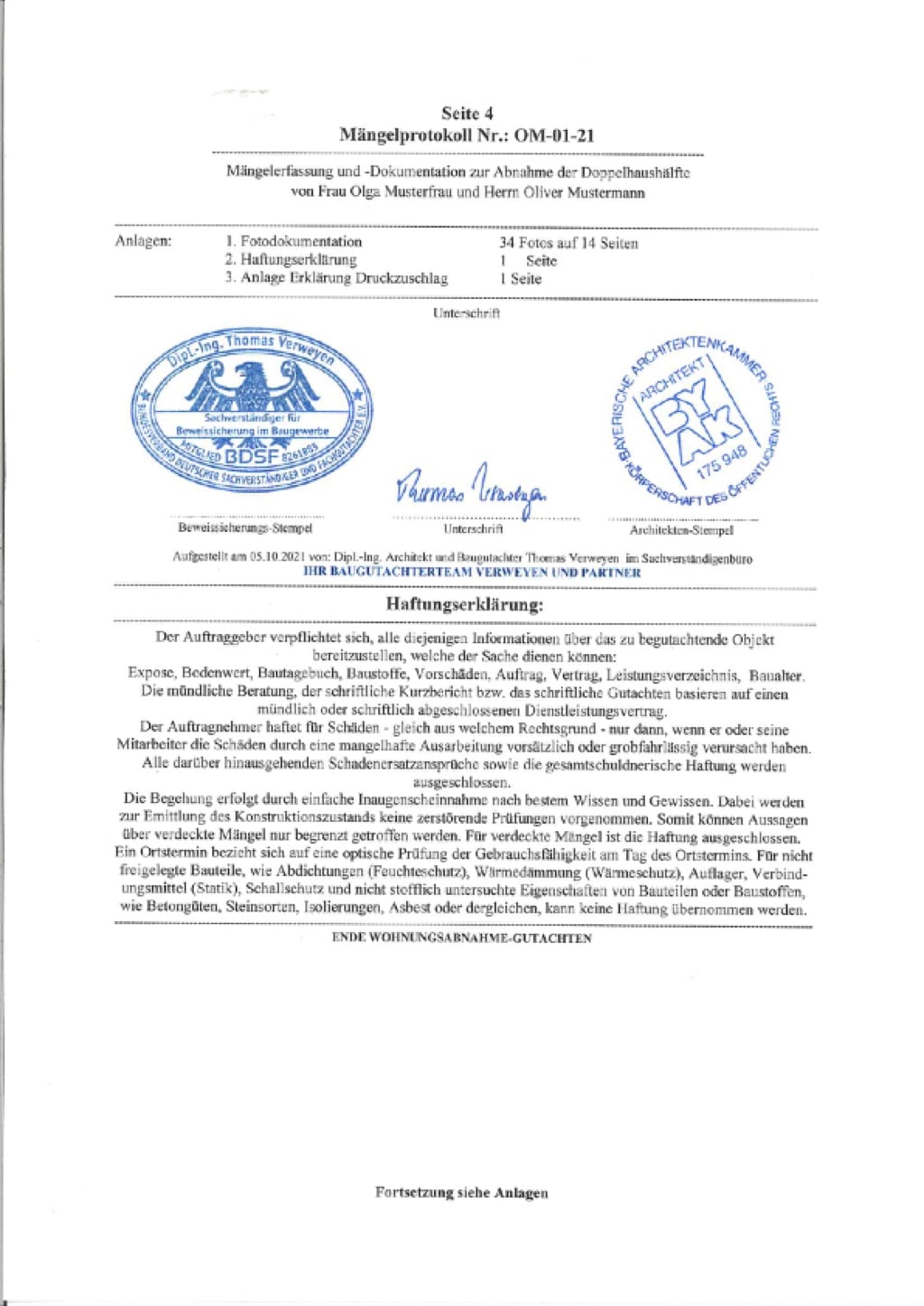 b.) Meine Mängelprotokoll-Gutachten sind perfekt bebildert und schriftlich ausführlich erläutert.