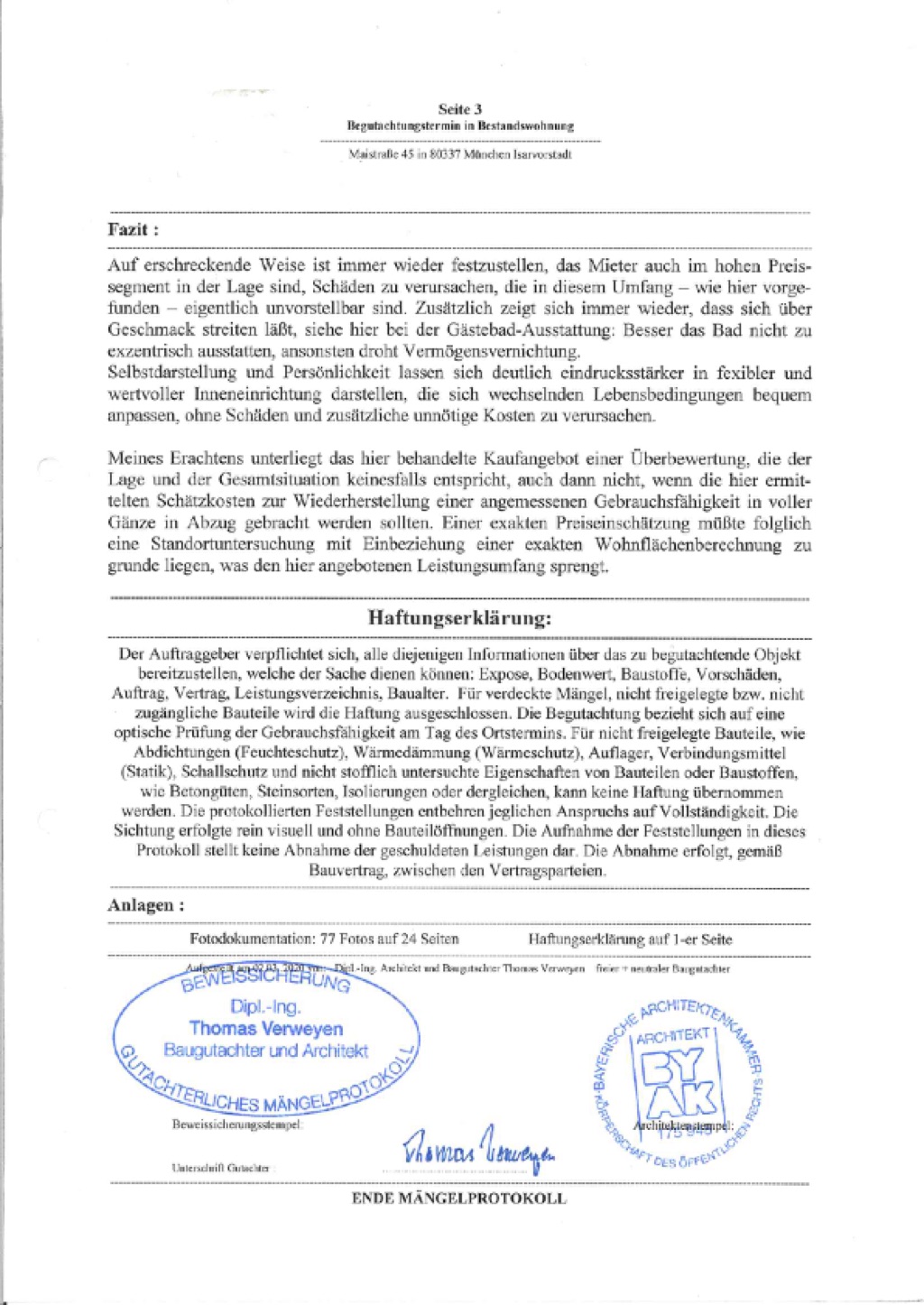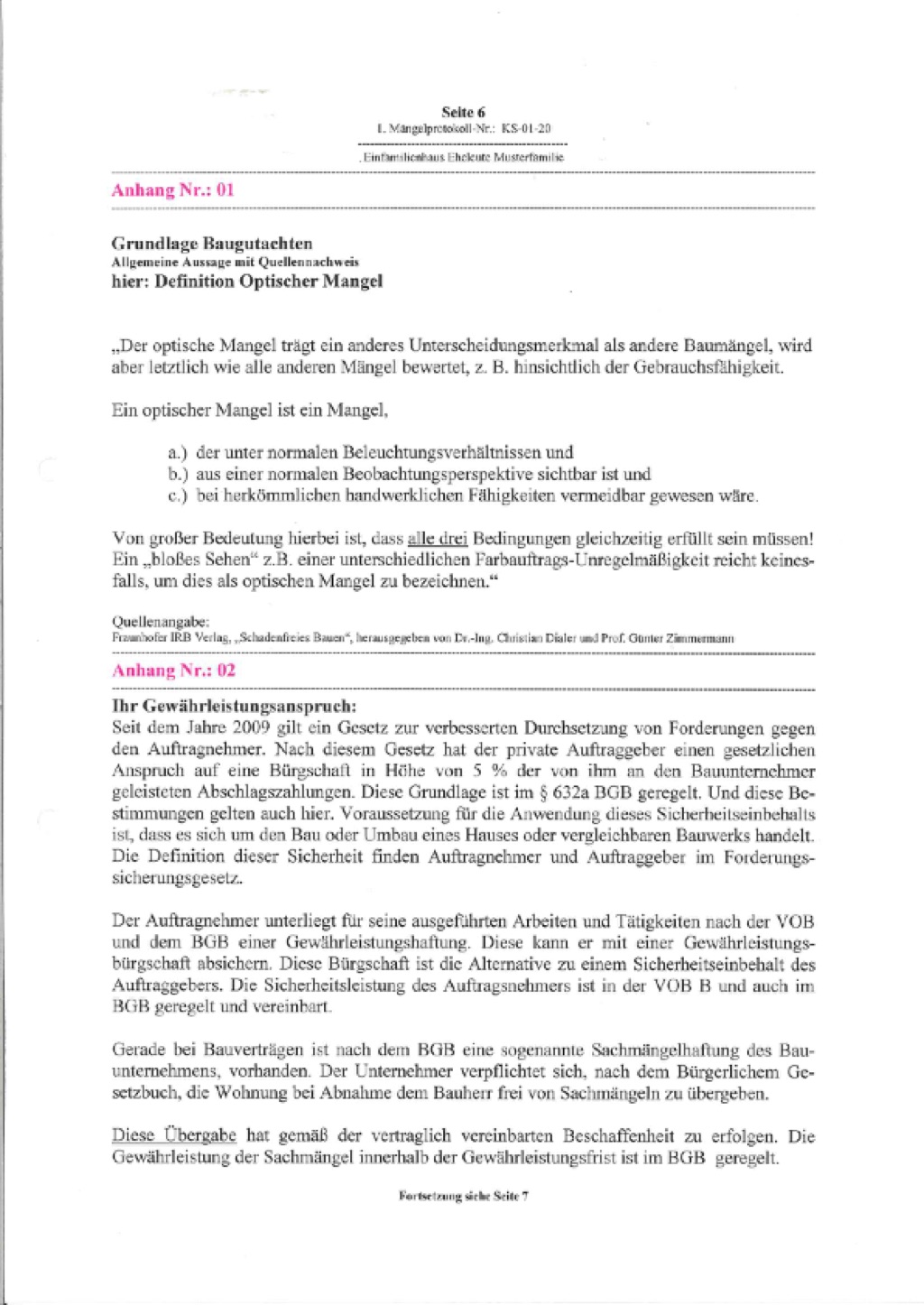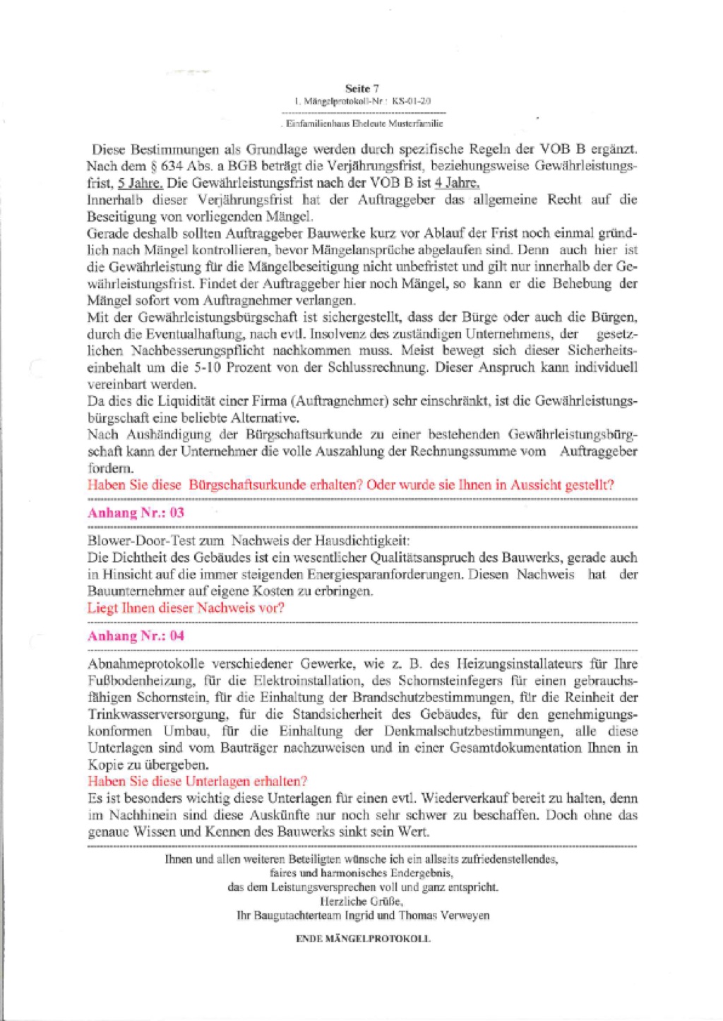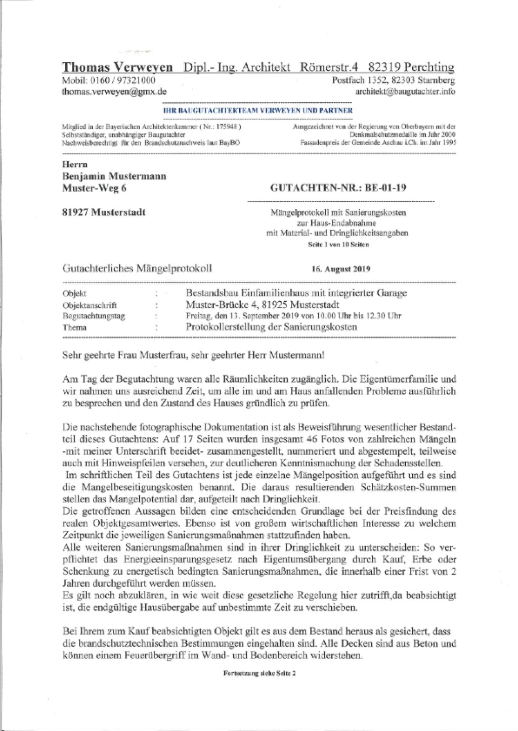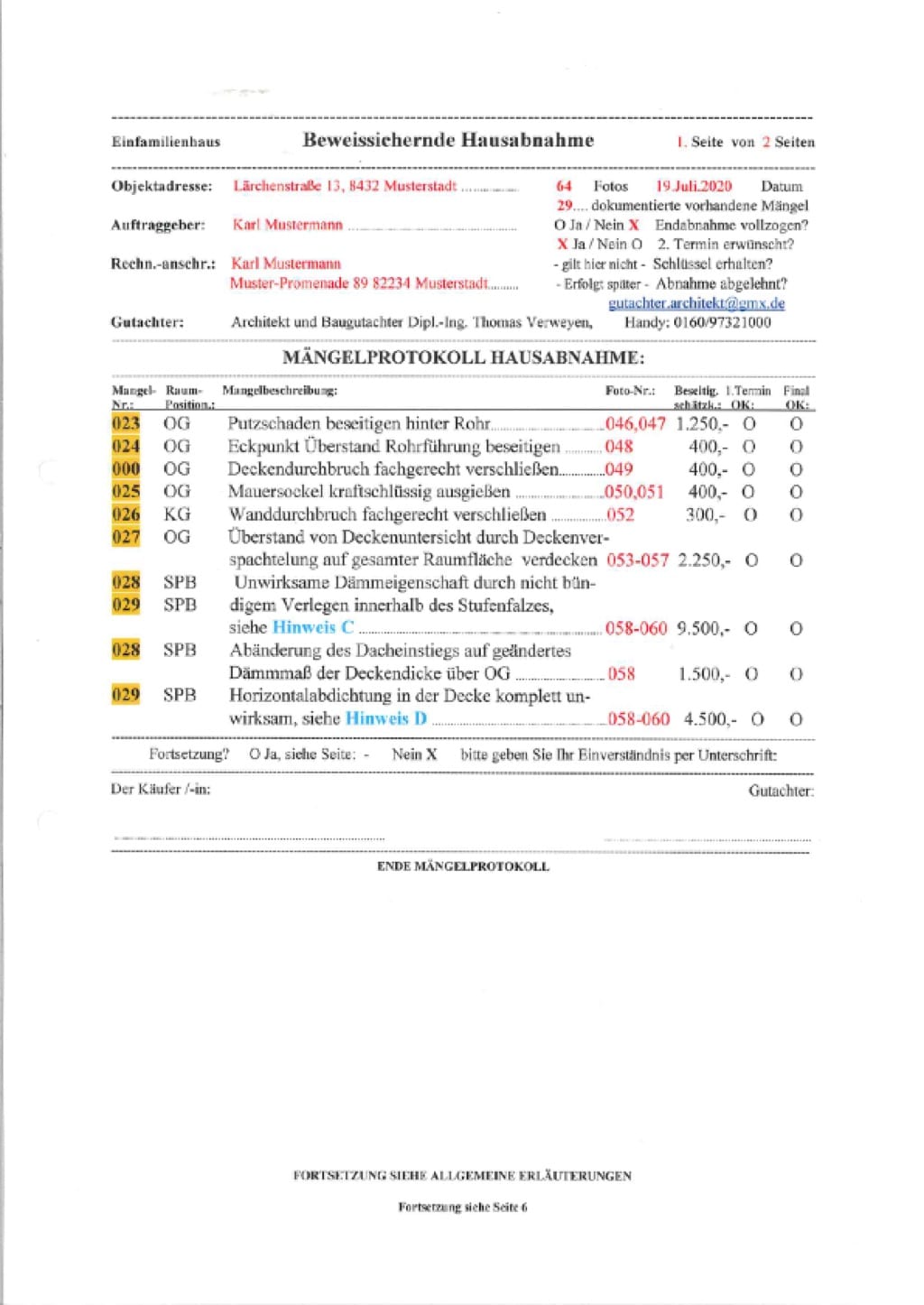 b.) Meine Mängelprotokoll-Gutachten sind perfekt bebildert und schriftlich ausführlich erläutert.