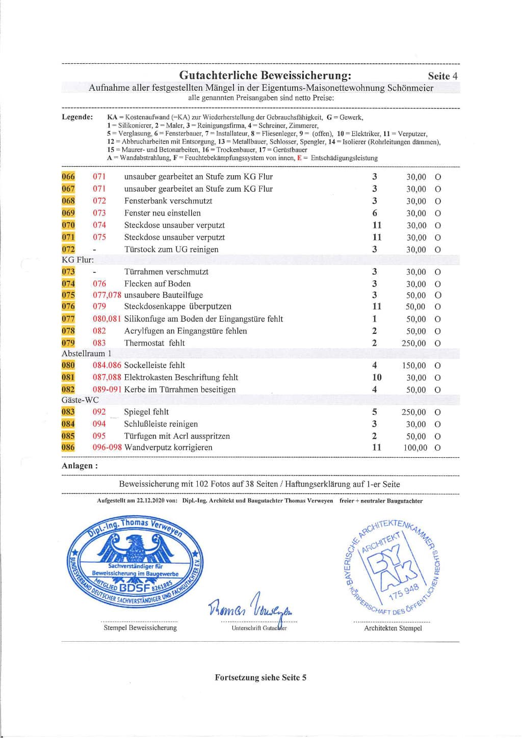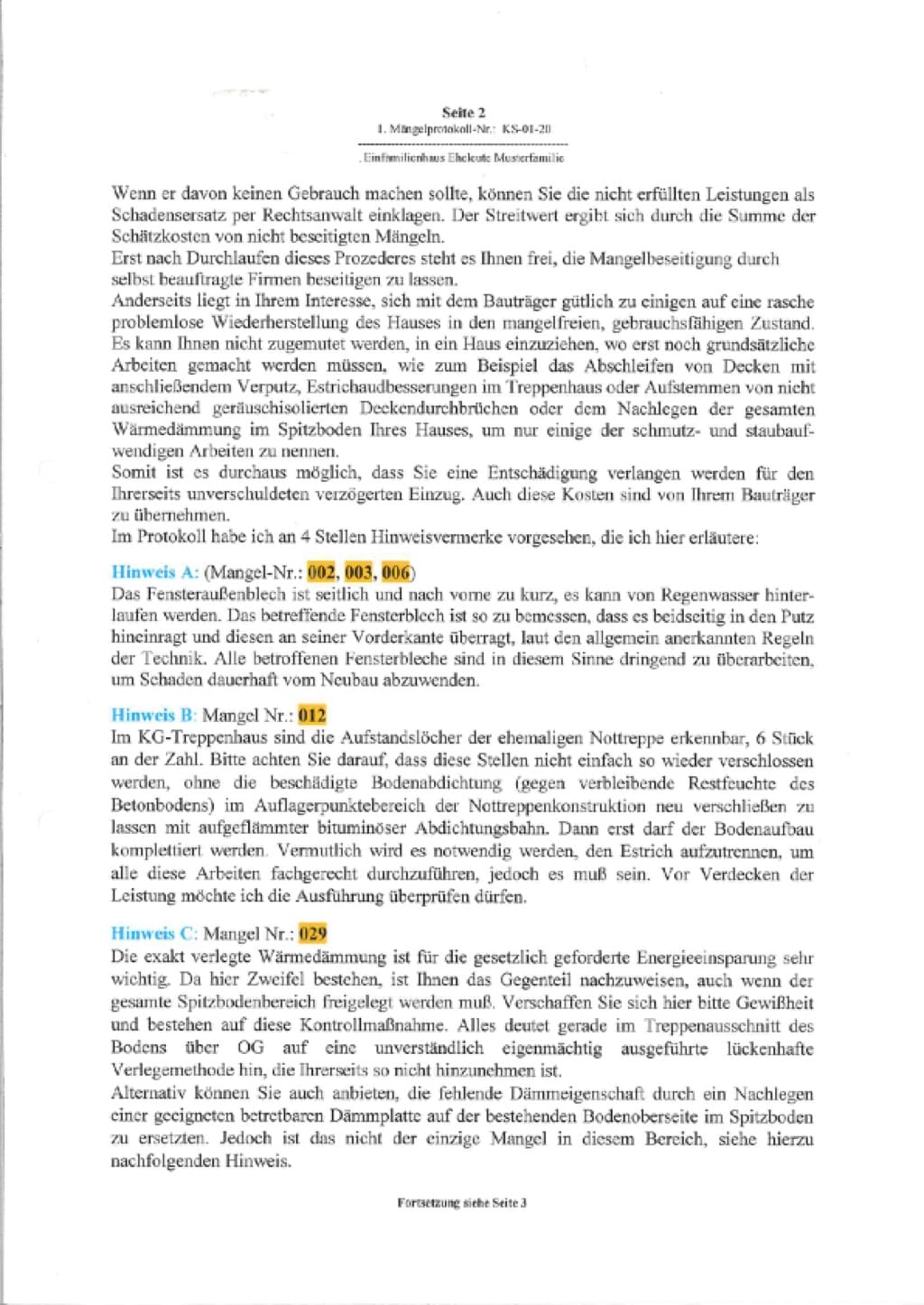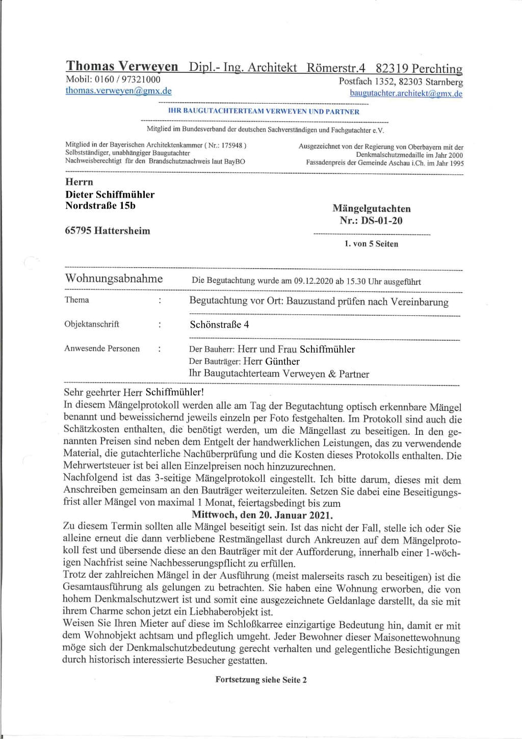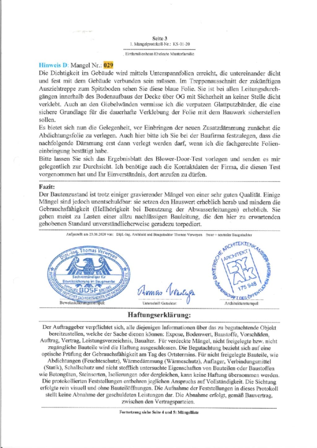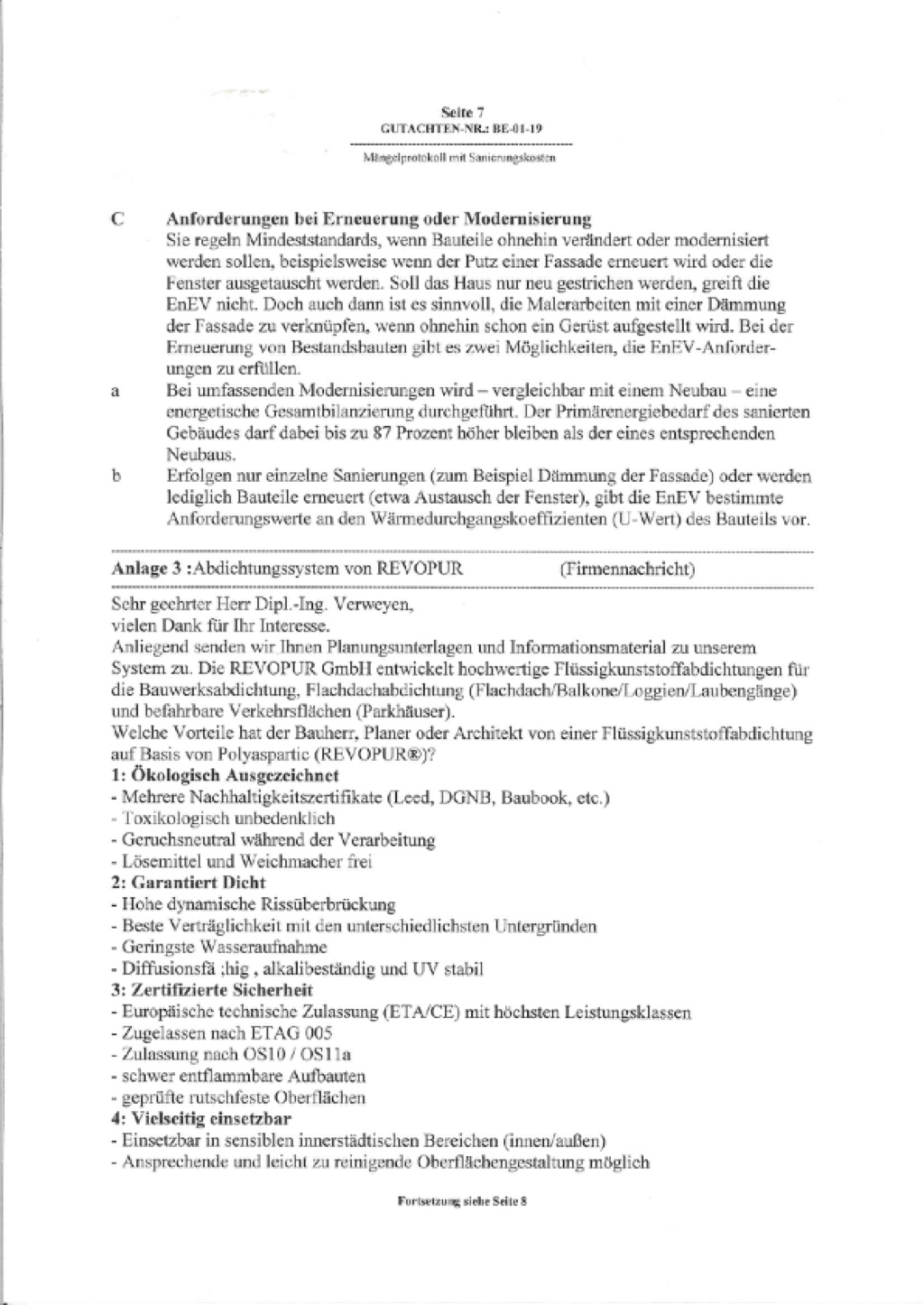 b.) Meine Mängelprotokoll-Gutachten sind perfekt bebildert und schriftlich ausführlich erläutert.